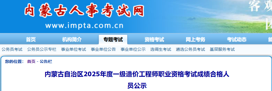 2025年度一级造价工程师职业资格考试成绩已经公布,现将内蒙古自治区成绩合格人员予以公示,共424人(名单附后)。