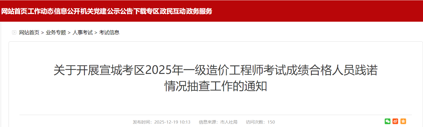 根据专业技术人员职业资格考试报名证明事项告知承诺制有关要求,拟于近期开展宣城考区2025年度一级造价工程师考试成绩合格人员践诺情况抽查工作,现将有关情况通知如下。