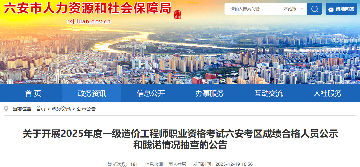 根据专业技术人员职业资格考试报名证明事项告知承诺制有关要求,现对2025年度一级造价工程师职业资格考试六安考区成绩合格人员进行公布,同时开展践诺情况抽查工作,对考生报考资格条件进行抽查,抽查比例不少于5% (抽查人员名单见附件),被抽查的考生同时也将收到相关通知。