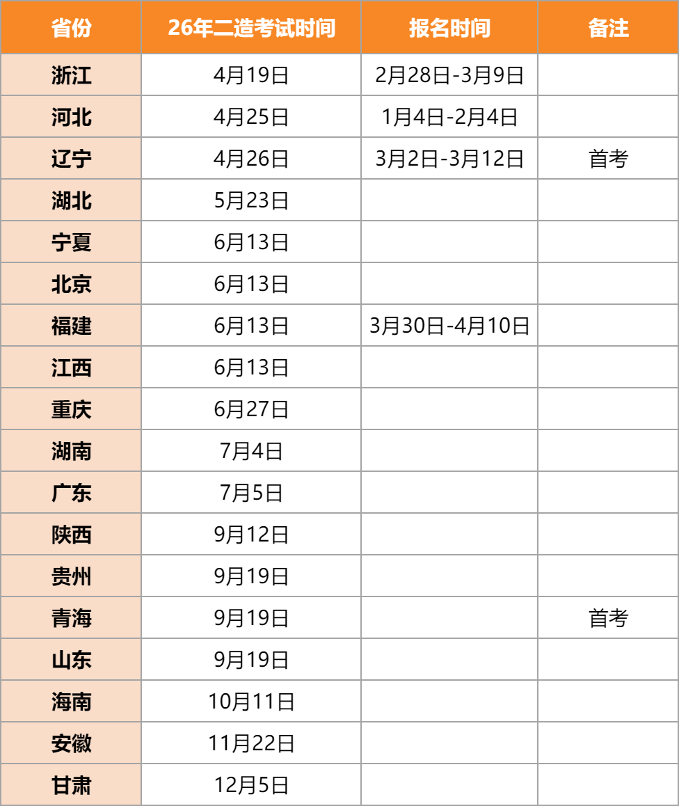 江西省人事考试中心发布了2026年度考务工作安排表,明确26年二造考试时间定为:6月13日。